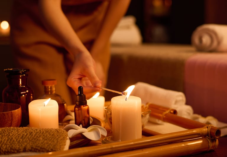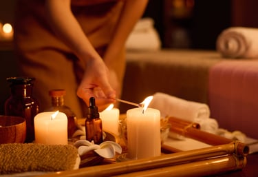 Candle massage is a relaxing spa treatment that uses warm, melted candle oils instead of regular massage oils. The gentle heat eases tension, softens the skin, and leaves you feeling deeply relaxed.